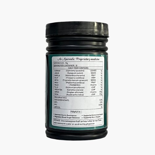 Formulated with carefully selected herbs such as Gurmar, Jamun seed, Karela, Giloy, Methi, Amla, Haldi, Tulsi, Green Tea, Adrak, and Neem, this powder is designed as a daily wellness companion, not a substitute for medical treatment.