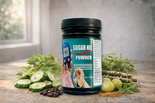 Sugar Nil Powder supports the body’s natural glucose metabolism through Ayurvedic herbs traditionally used to help maintain insulin function, digestion, and endocrine balance. It works as a supportive wellness product, not as a medicine.